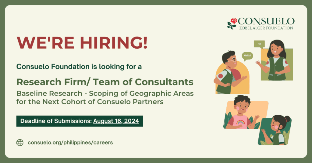 Consuelo Zobel Alger Foundation seeks the assistance of a research firm/team of consultant/s who will conduct the Baseline Research – Scoping…